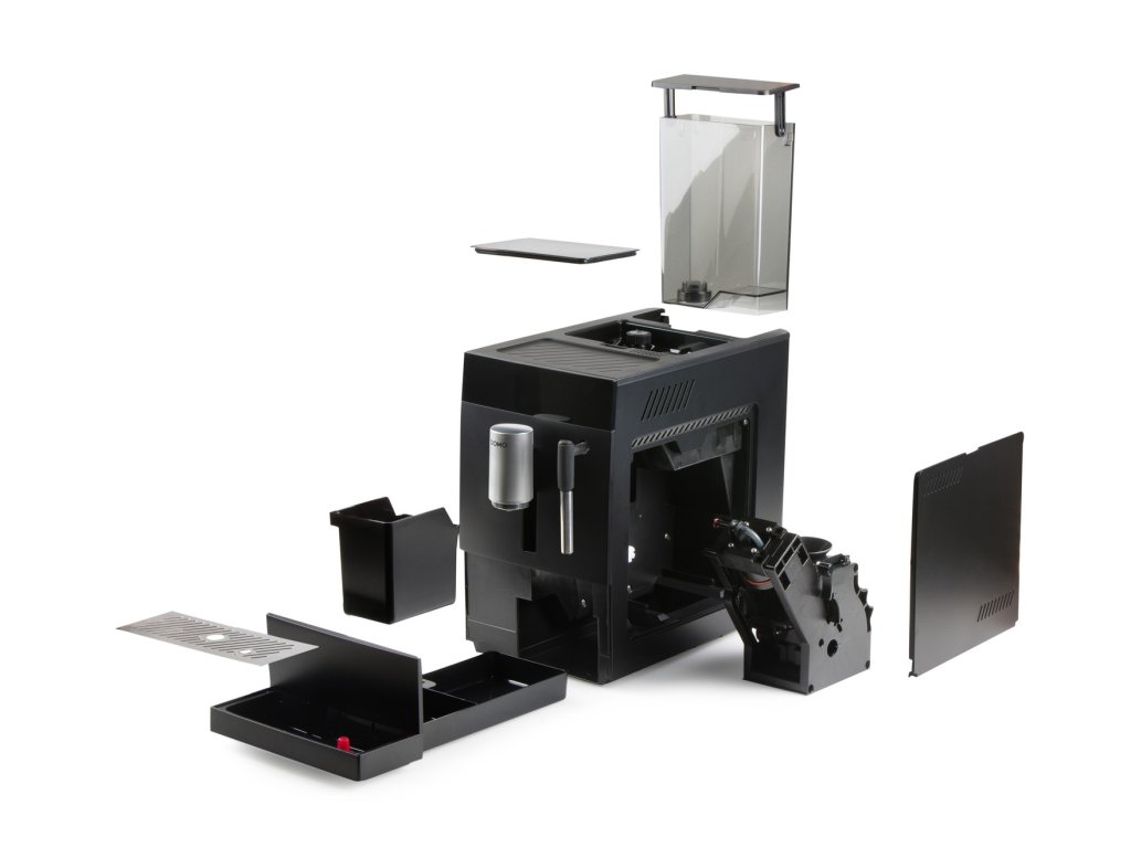 - Komplet se spařovací jednotkou lze vyjmout přes bok kávovaru = snadné čištění