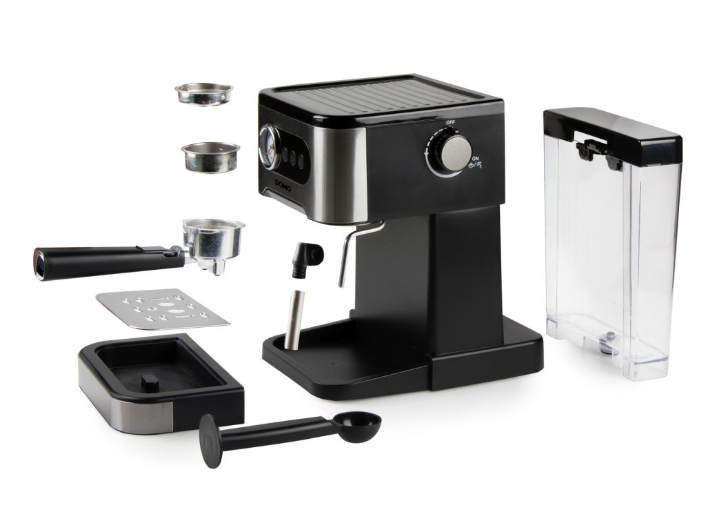 Espresso kávovar pákový - černý - DOMO DO1138K, 1 350 W, 20 Barů, Parní tryska, Nádržka na vodu 1 500 ml