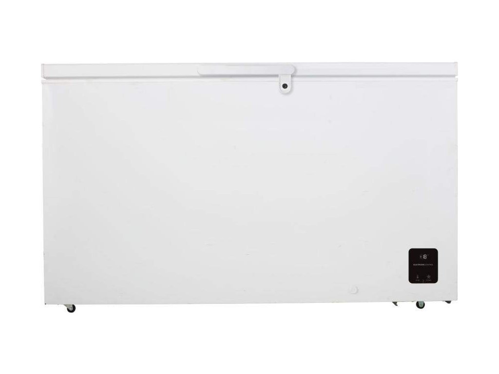 Truhlicová mraznička, FreezeProtect -15 °C, FastFreeze, 440 l, E, 40 dB, bílá, 85,8 × 142,9 × 74,6 cm