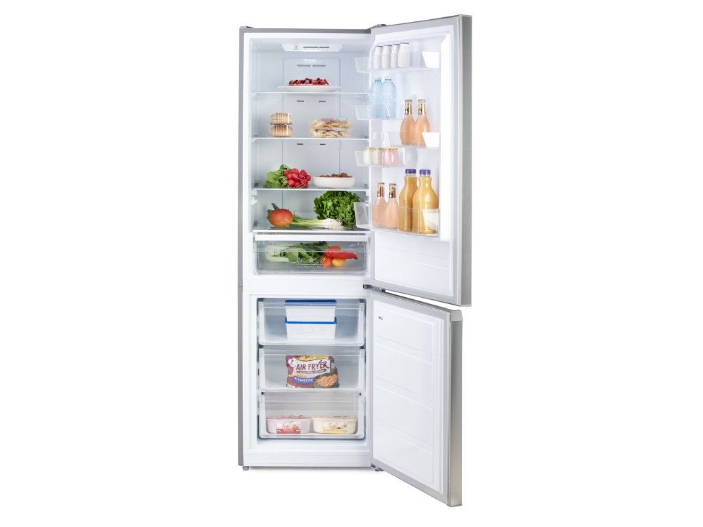 Energeticky úsporná chladnička DOMO DO91336C kombinuje elegantní design z nerezové oceli s chytrou funkčností. S celkovou kapacitou 310 litrů nabízí dostatek úložného prostoru: 224 litrů v chladničce a 86 litrů v plné 4hvězdičkové mrazničce.