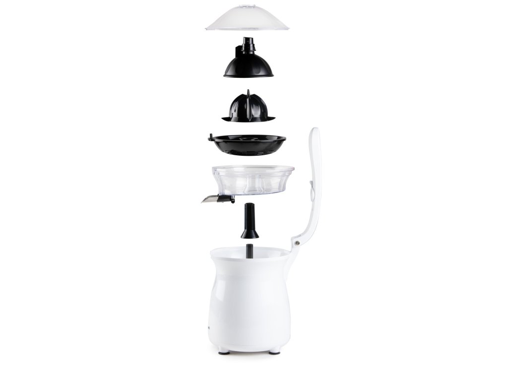 Elektrický lis na citrusy s pákou a automatickým spuštěním přitlačením citrusu na lisovací kužel. Výkonný motor a pohodlná velká páka vám usnadní lisování i většího množství citrusů za sebou. Výlevku nádoby lze jednoduše uzavřít a otevřít. S takovým přístrojem v domácnosti jednoduše připravíte vždy čerstvý džus plný vitamínů a minerálů.