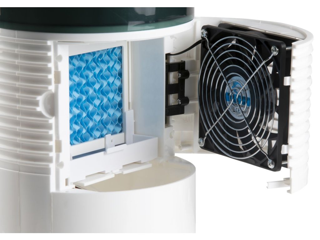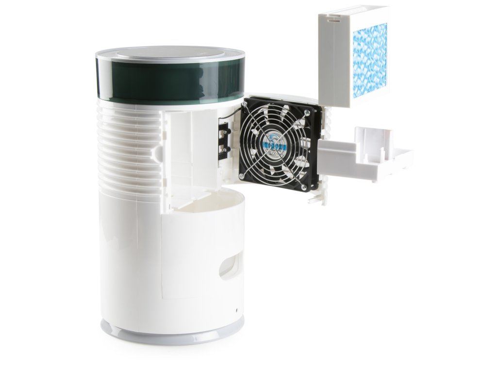 Lehký a snadno přenosný ochlazovač vzduchu vás příjemně osvěží chladným vzduchem v horkých letních dnech. Vzduch je na vstupu do přístroje ochlazován studenou vodou přečerpávanou přes speciální membránu. Efekt ochlazení lze zvýšit vložením speciálních nádobek s chladícím gelem, které jsou součástí balení. Zvlhčení vzduchu také usnadňuje v suchém letním počasí dýchání.