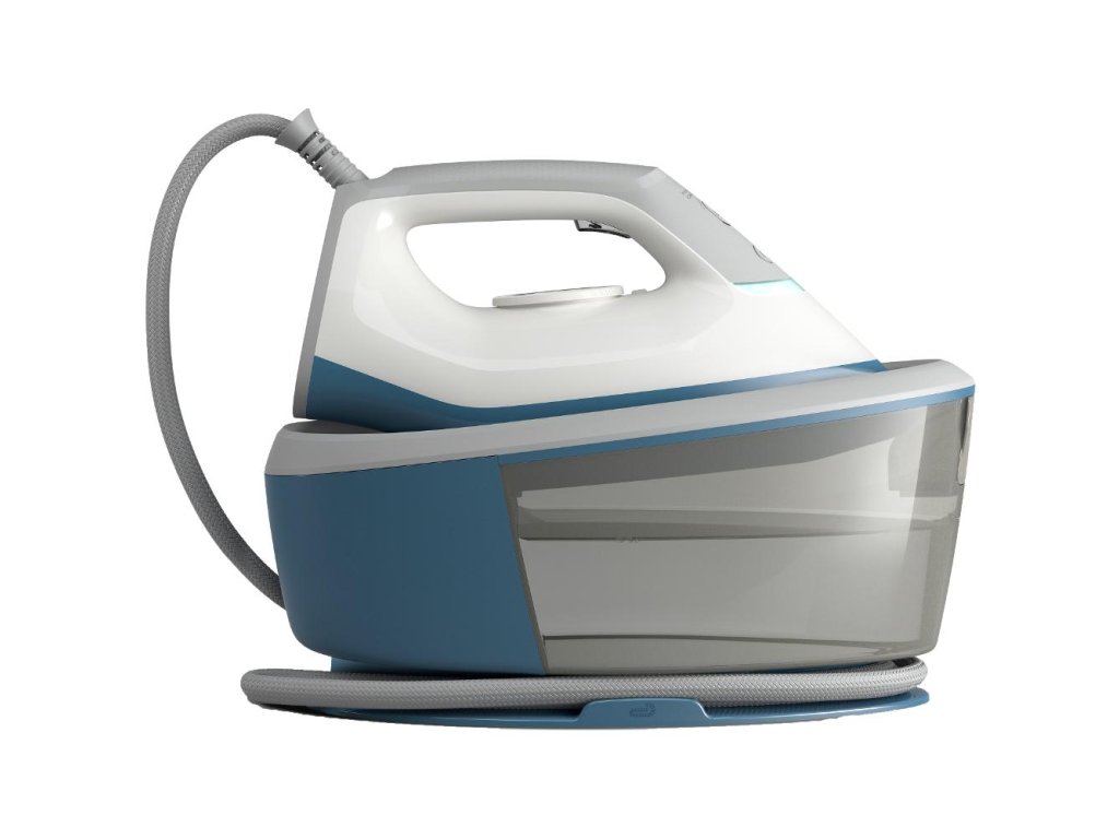 Parní stanice s čerpadlem o tlaku 5 bar a parním rázem 240 g. Stálý parní výkon pro nepřetržité žehlení 120 g/min. Vodní nádržka na 1,2 l vody. Hladká keramická plocha.
