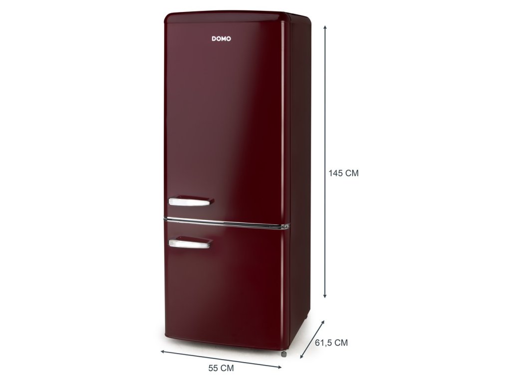 Retro lednice s mrazákem dole - bordó - DOMO DO91707R, Objem chladničky: 147 l *, Objem mrazáku: 44 l *, Třída: D