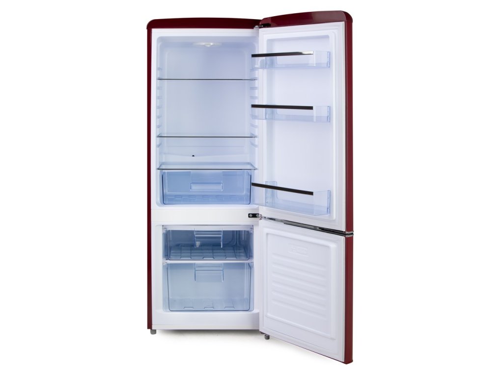 Kompaktní retro lednice vyvedená ve vínově červené barvě nenásilně zapadne do moderního interiéru vašeho bytu a doplní jej svým jedinečným vzhledem. Lednici s menším mrazákem dole oceníte nejen pokud zpracováváte zejména čerstvé suroviny, ale také kvůli její nižší spotřebě.