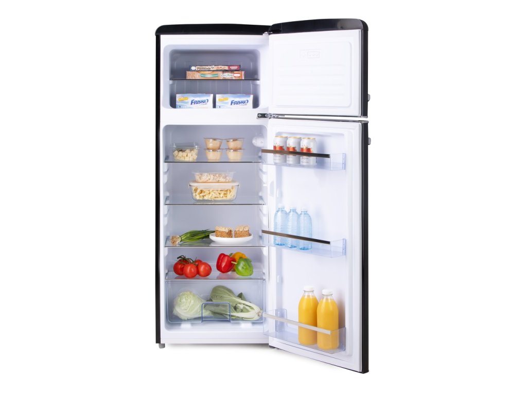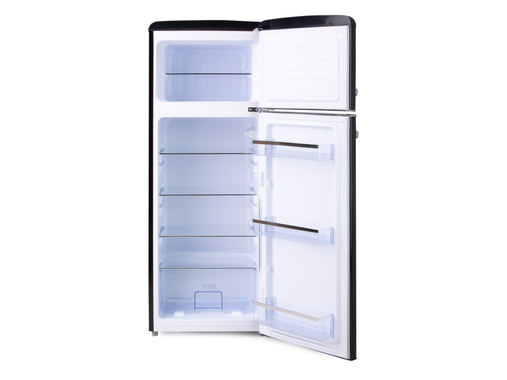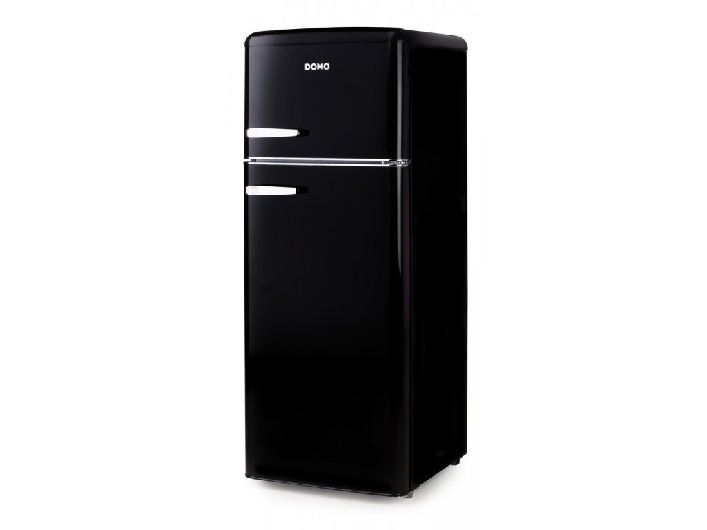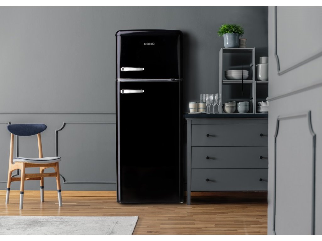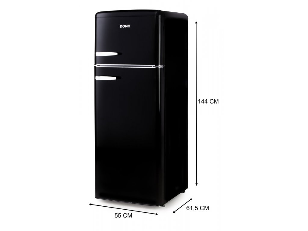 Retro lednice s mrazákem nahoře - černá - DOMO DO91704R, Objem chladničky: 162 l *, Objem mrazáku: 44 l *, Třída: D