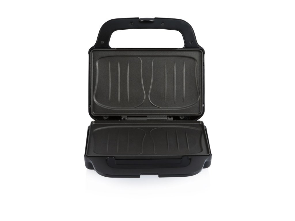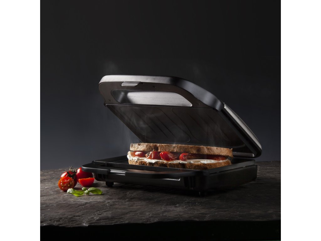 Sendvičovač vhodný pro přípravu velkých sendvičů 27x16 cm. Velmi rychlé nahřátí díky 900 W příkonu a nepřilnavý pečící povrch bez PFAS