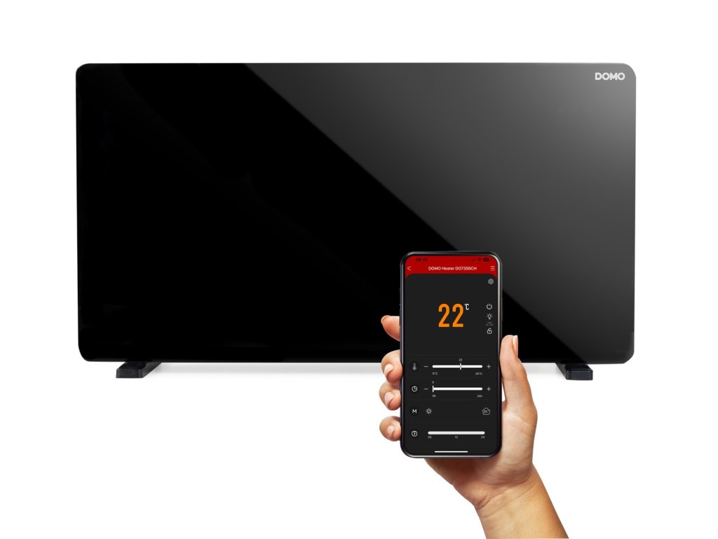 Skleněný teplovzdušný konvektor s WIFI - DOMO DO7356CH, Příkon: 2 000 W, WIFI, dálkový ovladač, IP24, ECO funkce