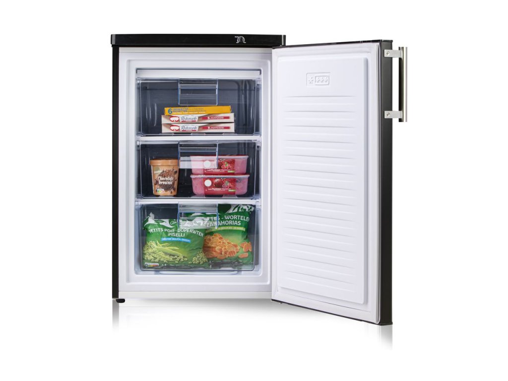 Stylový šuplíkový mrazák v matné černé barvě s černo-antracitovou "šachovnicí" a hrubším odolným povrchem jako odkládací plochou na horním víku. Svou výškou 85 cm se vejde do každé kuchyně a také potěší velmi úsporným provozem energetické třídy C. Mrazák se třemi průhlednými šuplíky také oceníte při uskladnění potravin na chatě, nebo jako rozšíření mrazící kapacity vaší kombinované lednice. Mrazák lze díky tichému chodu kompresoru použít i přímo v obytných prostorech a nebude vás nijak rušit.