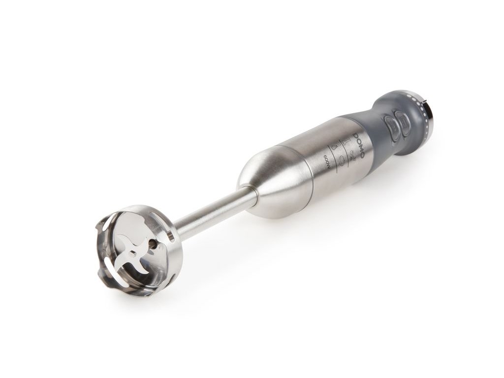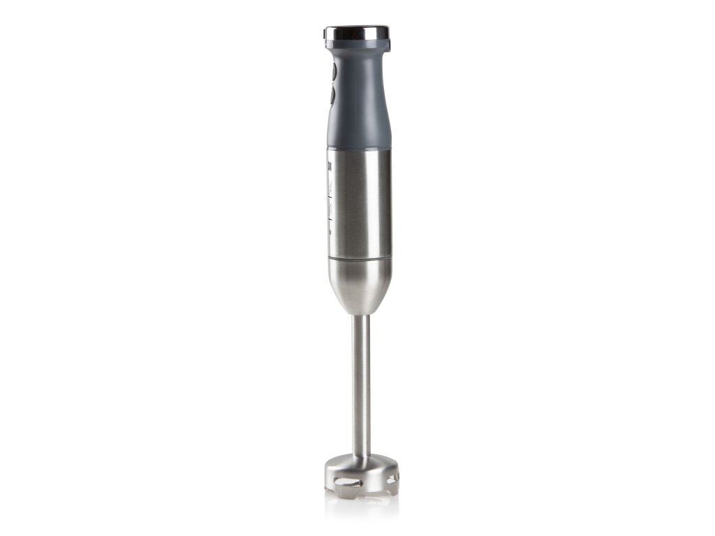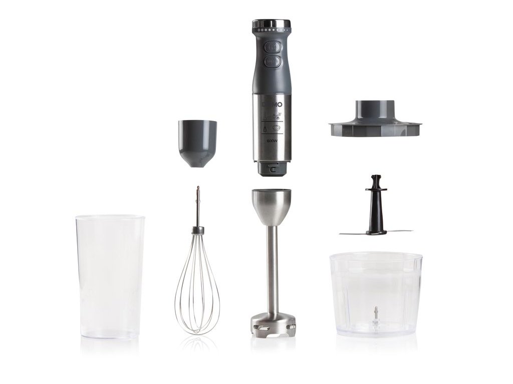 Výkonný, ale přesto velmi tichý 600 W tyčový mixér z broušeného nerezu v elegantním a ergonomickém designu. Sada obsahuje ponorný nástavec se 4 noži, šlehací nerezovou metlu a kompletní sekáček potravin s velmi ostrými noži. S touto kompletní výbavou hravě připravíte krémovou polévku, nadýchaný moučník, nebo během okamžiku nasekáte na kostičky zeleninu i cibuli bez pálení očí.