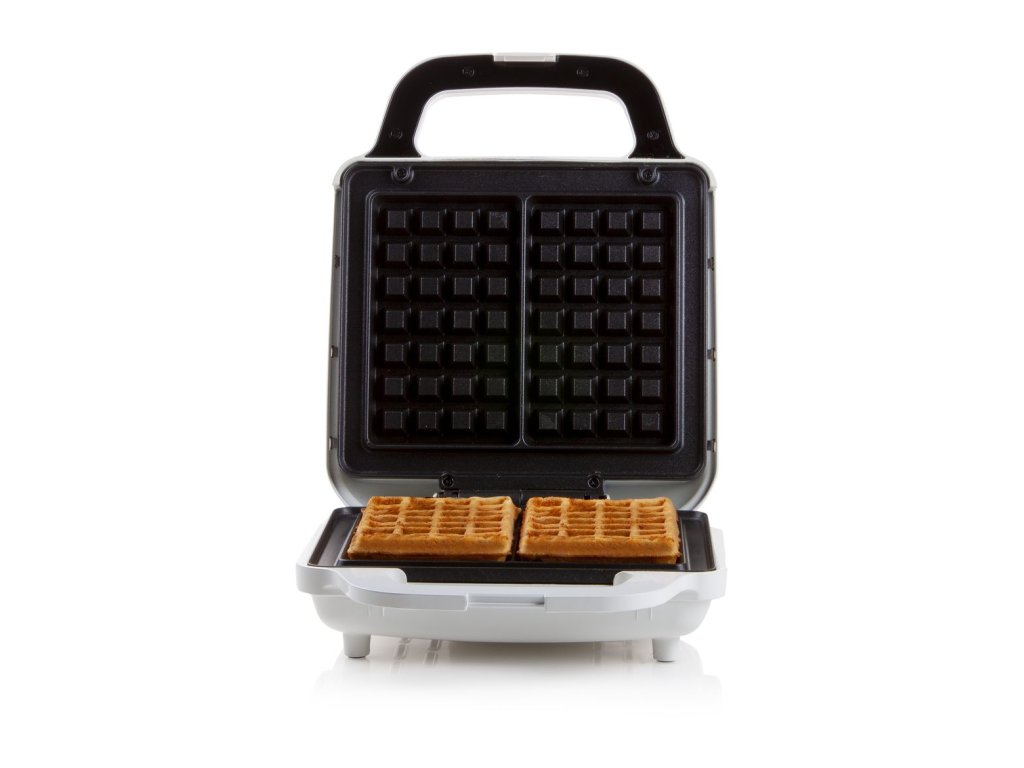 S vaflovačem vybaveným nastavitelným termostatem vždy snadno připravíte vafle přesně podle vašich představ - vláčné, propečenější i pěkně křupavé. Ve vaflovači upečete najednou 2 velké obdélníkové vafle o výšce až 2 cm. Přebytečné těsto pak zachytí 1,5 cm široký kanálek obepínající pečící desku po celém jejím obvodu. Pečení více vaflí za sebou bez připalování a snadnému čištění pomůže kvalitní nepřilnavý povrch.