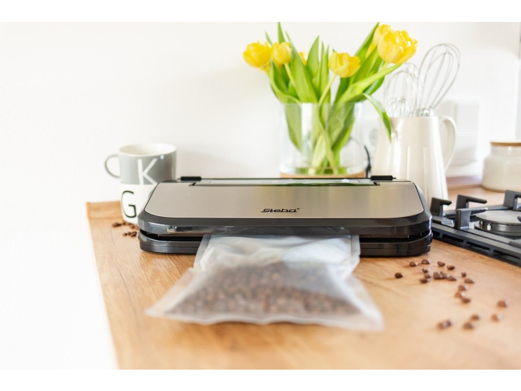 Výkonná vakuová svářečka fólií Steba VK 7 s dvojitým těsněním, pro domácí i profesionální uchovávání potravin v mrazáku a chladničce s garanci 97% vakua. Používá odolné profesionální drážkované fólie. Tyto fólie se vyrábějí z materiálu o vyšší hustotě. Mohou být mraženy, vařeny a lze je bezpečně použít i v mikrovlnné troubě. Drážkování na folii pomáhá vytvořit vzduchotěsný spoj – spoj má větší trvanlivost než standardní. Sáčky lze po umytí použít opakovaně. 97% odvodu vzduchu testována a několikanásobně zvýšená trvanlivost vakuovaných potravin v mrazničce z 6 měsíců až na 2–3 roky (maso, zelenina, ovoce) v chladničce z 1 týdne až na 5-7 týdnů (uzeniny, sýry) sací výkon 8 l / min vakuová pumpa 60 cm / Hg (-0,8 bar) pohodlný mechanismus rychlého zacvaknutí automatické vakuování a utěsnění extra těsnící funkce tlačítko STOP pro okamžité přerušení odsávání ventil pro připojení hadičky pro vakuovací nádoby integrovaný nůž na fólie snadné čištění díky odnimatelné odkapové vaničky pro role a sáčky do šířky 30 cm o jakékoli délce do vakuovačky lze použít i jiné než originální sáčky vyrobené pro vakuovače. opakované použití – speciální sáčky lze umýt a používat opakovaně zmrazené potraviny se mohou v těchto sáčcích vařit ve vodě a rozmrazovat či ohřívat v mikrovlnné troubě balení obsahuje hadičku pro připojení vak. nádob a zátku na víno příkon: 150 W rozměry (VxŠxH): 9 x 40 x 16 cm váha: 1,6 kg Steba = kvalitní německá značkaDoplňkové parametry