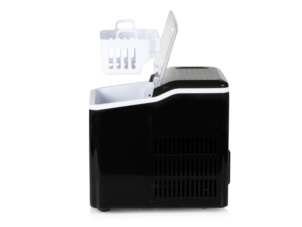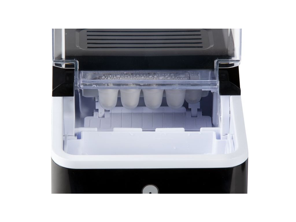 Výkoný výrobník ledu vyvedený v černé barvě disponující vlastním kompresorem s výkonem až 12 kg ledových kostek za 24 hodin. Kromě kompaktního minimalistického designu potěší i tichým provozem a dlouhým přívodním kabelem. Výrobník ledu tak nebude problém umístit téměř kamkoliv v kuchyni pro denní používání. Výrobník dokáže každých 8 minut vytvořit 9 kostek ledu. Přístroj za vás hlídá množství vody i množství vytvořených ledových kostek a vždy vás upozorní na prázdný zásobník vody, nebo plný zásobník ledu a automaticky se vypne. Díky průhlednému víku máte nad výrobou ledových kostek plnou kontrolu, aniž byste museli přístroj otvírat. Obsluha přístroje je velice snadná a stačí vám k tomu jedno tlačítko.